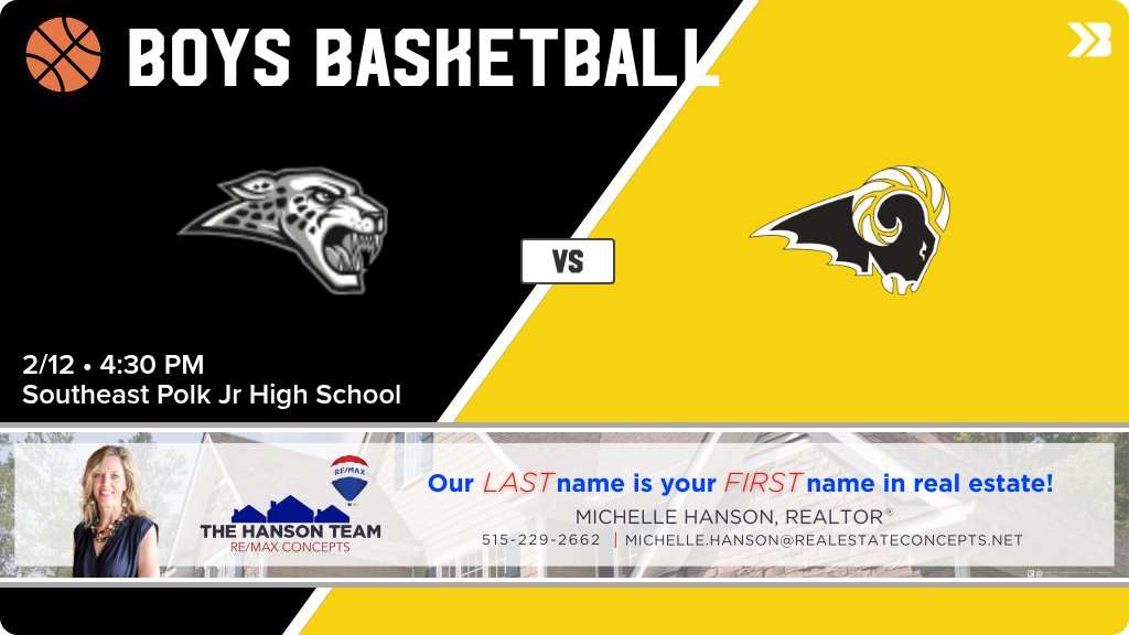 Boys Basketball (Varsity) Game Day! - Check out the event preview for the The Southeast Polk Rams vs The Ankeny Centennial Jaguars. It starts at 7:45 PM and is at Ankeny Centennial High School Main Gym. https://www.gobound.com/ia/ihsaa/boysbasketball/2025-26/comps/h2025010806100629552dd5fa8454b4d
