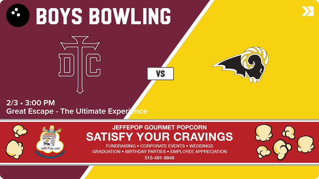 Boys Bowling (Varsity) Meet Day! - Check out the event preview for the The Southeast Polk Rams vs The Dowling Catholic Maroons. It starts at 3:00 PM and is at Great Escape - The Ultimate Experience. https://www.gobound.com/ia/ihsaa/bbo/2025-26/comps/h202504131115273471fa723c1afd24e