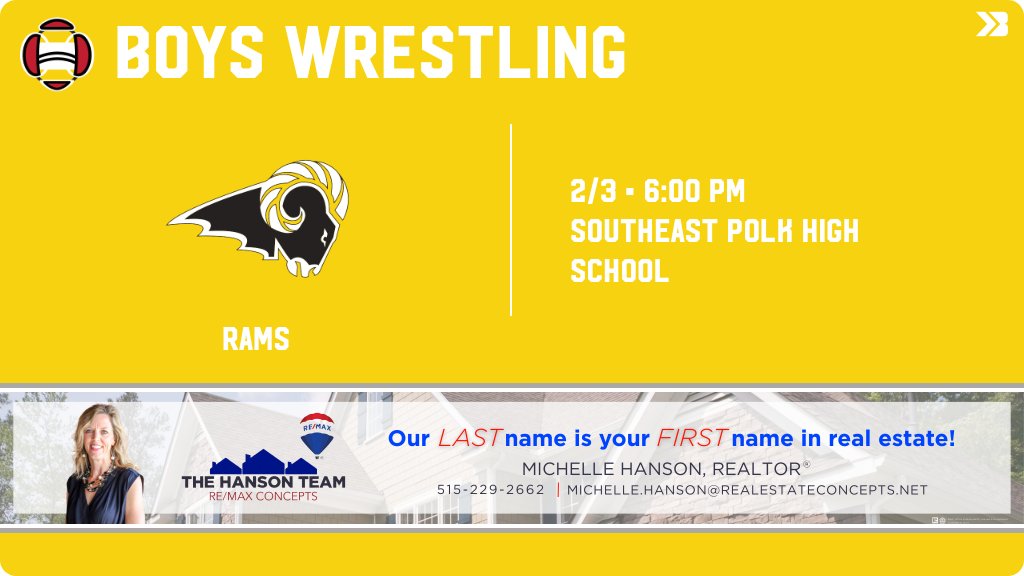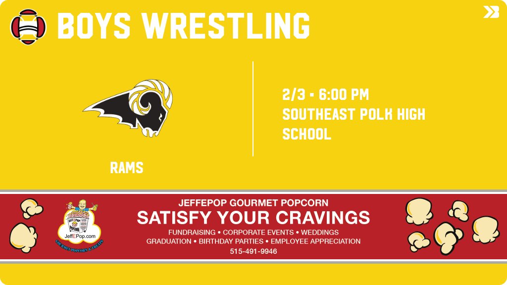 Boys Wrestling (Varsity) Meet Day! - Check out the event preview for the Southeast Polk Rams. It starts at 6:00 PM and is at Southeast Polk High School High School Gyms. https://www.gobound.com/ia/ihsaa/boyswrestling/2025-26/comps/h2025071708355172064f408ba83f040