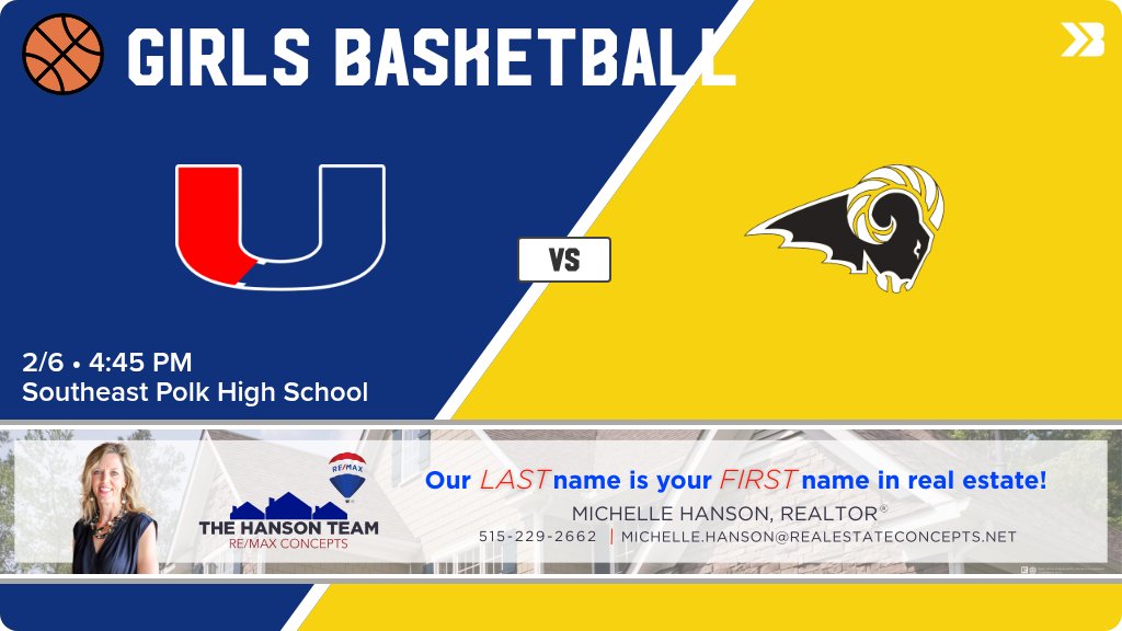 Girls Basketball (Varsity) Game Day! - Check out the event preview for the The Southeast Polk Rams vs The Urbandale J-Hawks. It starts at 6:15 PM and is at Southeast Polk High School High School Gyms. https://www.gobound.com/ia/ighsau/girlsbasketball/2025-26/comps/h20250409022903832368fb64d788d45