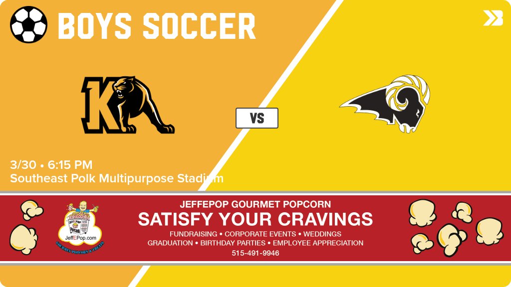 Boys Soccer (JV1) Game Day! - Check out the event preview for the The Southeast Polk Rams vs The Knoxville Panthers. It starts at 5:00 PM and is at Southeast Polk Multipurpose Stadium HS Stadium Field. https://www.gobound.com/ia/ihsaa/boyssoccer/2025-26/comps/h2025061905044145948864dd0ea8842