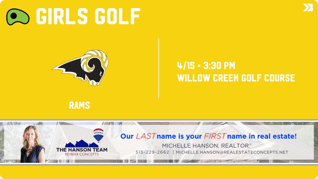 Girls Golf (Varsity) Meet Day! - Check out the event preview for the Southeast Polk Rams. It starts at 3:30 PM and is at Willow Creek Golf Course. https://www.gobound.com/ia/ighsau/ggf/2025-26/comps/h20250404012557415b424b4cdcb0644