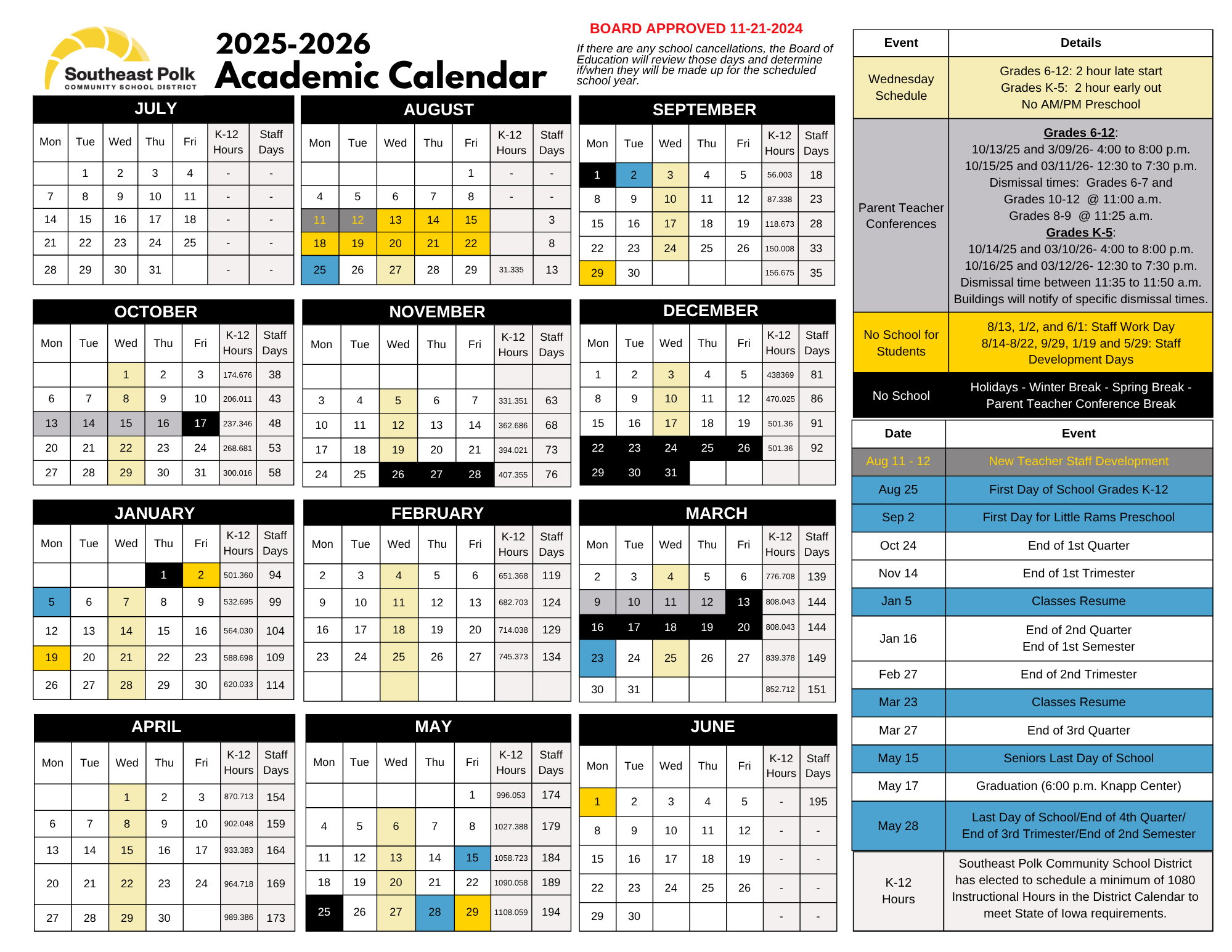 NOTE: The 2025-2026 Academic Calendar has been updated with the updated Graduation time of 6:00 p.m.