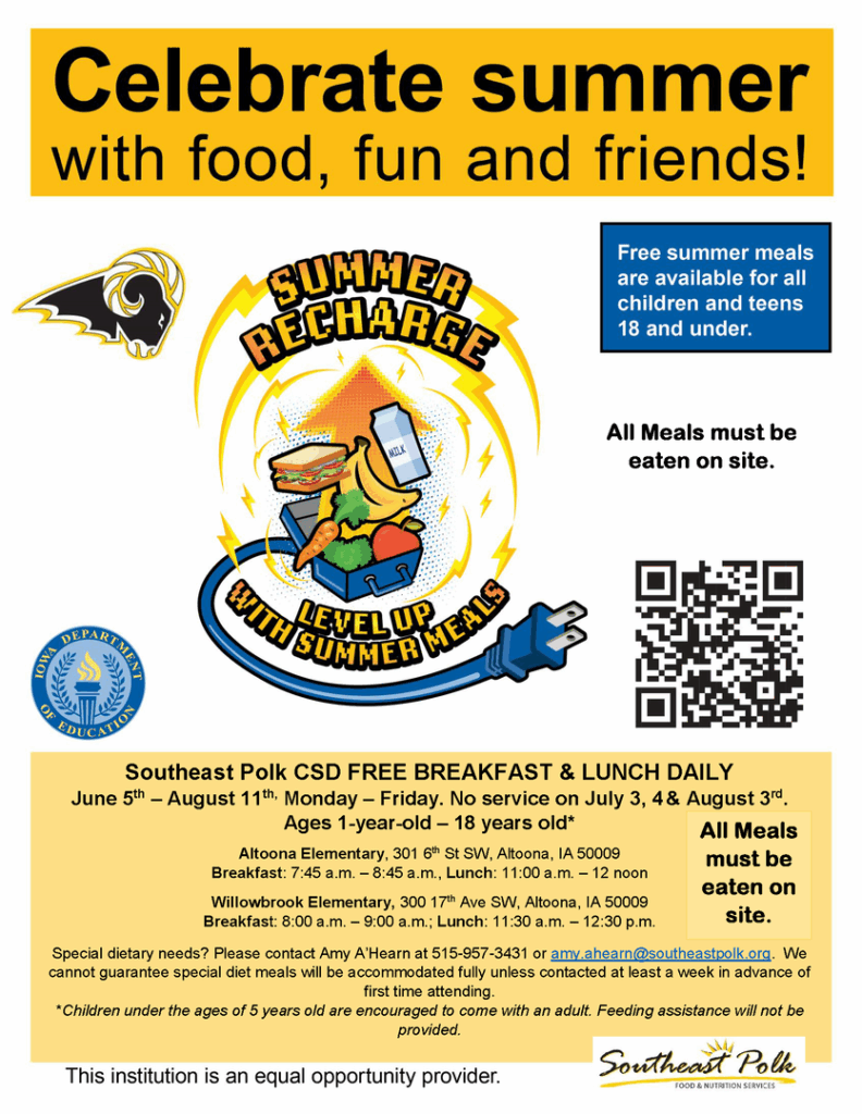 Go here for menus and maps! https://www.southeastpolk.org/departments/food-nutrition-services/summermeals/