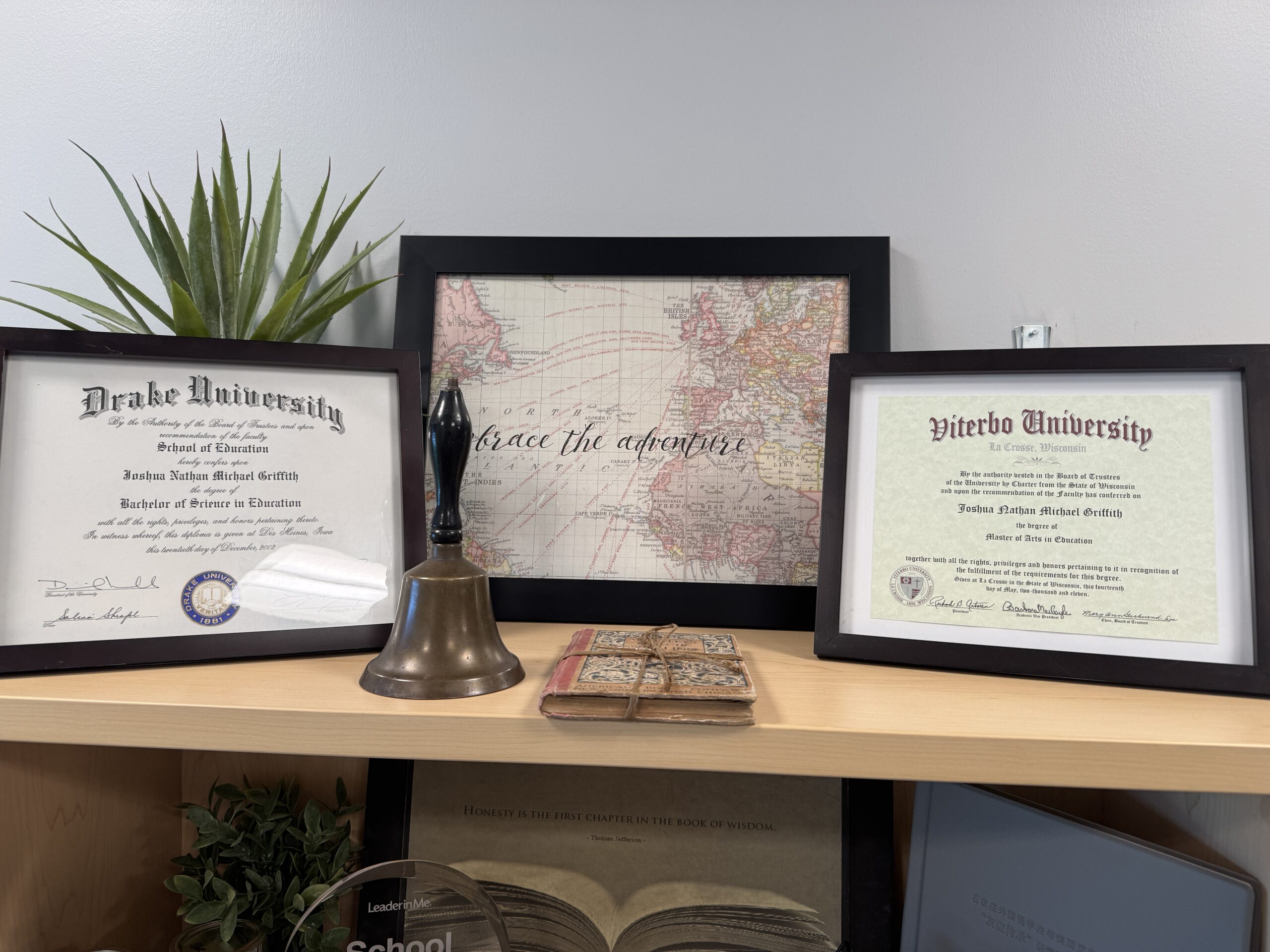 Education runs through generations in his family: his great-grandmother taught in a one-room schoolhouse, his grandfather, Mr. Vern Fennell, was a Southeast Polk High School business teacher, his mother worked as a school office manager, and his wife serves as a school nurse. In his office, he proudly displays the old bell that his great-grandmother rang to let her students know it was time to start school. He also has inspiring notes that his grandfather wrote when he was teaching – and they still apply today!