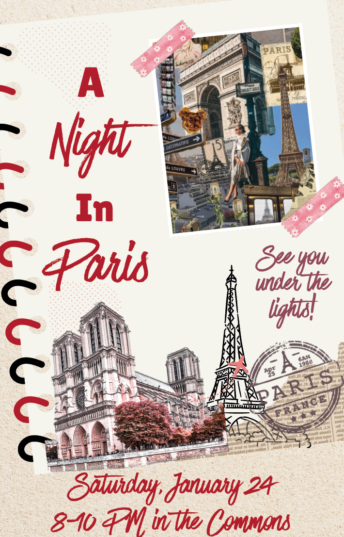 Step into the romance and charm of the City of Lights as you join us for this year’s Winter Formal: A Night in Paris. Experience an evening filled with music, and magical Parisian ambiance. From sparkling lights to iconic French-inspired décor, this unforgettable night will transport you straight to Paris. Dress your best, and get ready for a magnifique celebration you won’t want to miss!